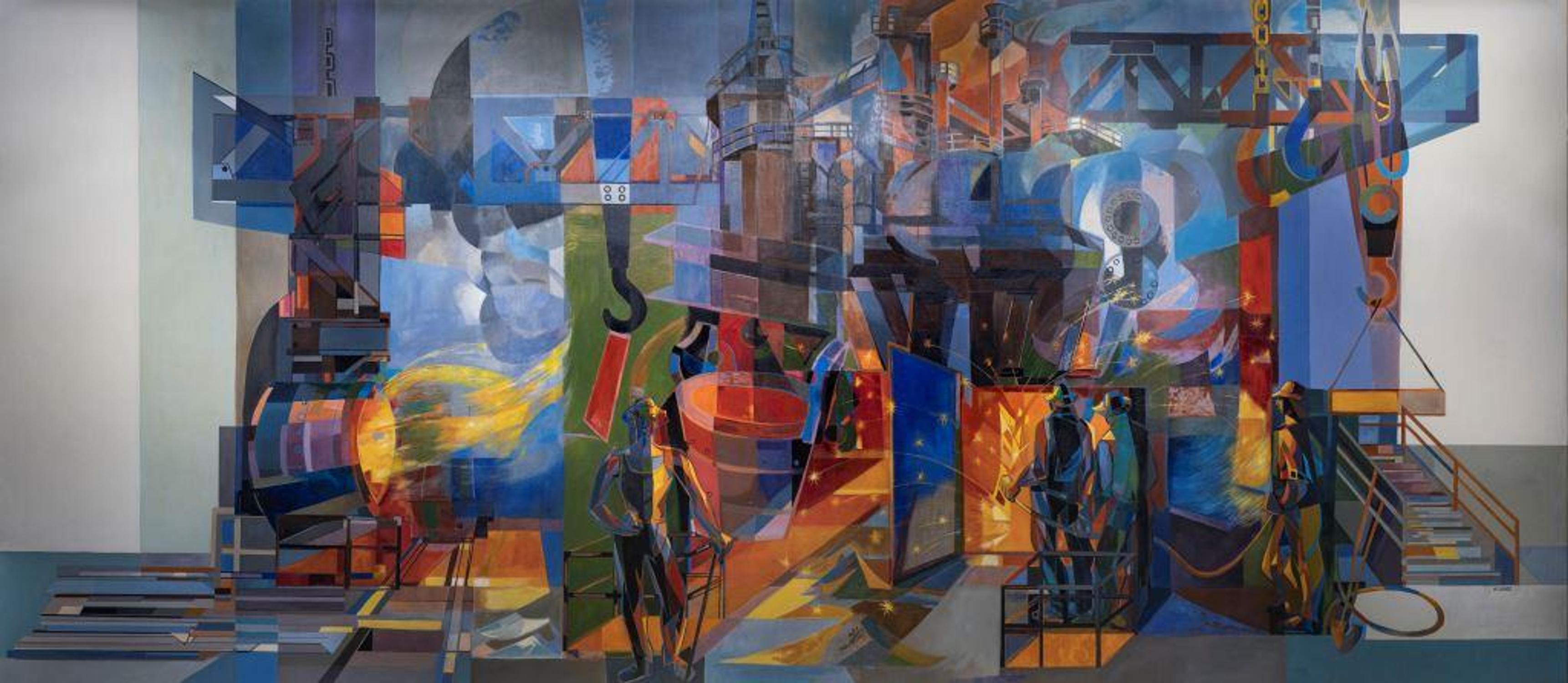 Cette toile monumentale peinte par Camille Hilaire sur une commande de la SIDELOR en 1967, est d’abord installée dans le self-service de la Société Métallurgique de Knutange (S.M.K).